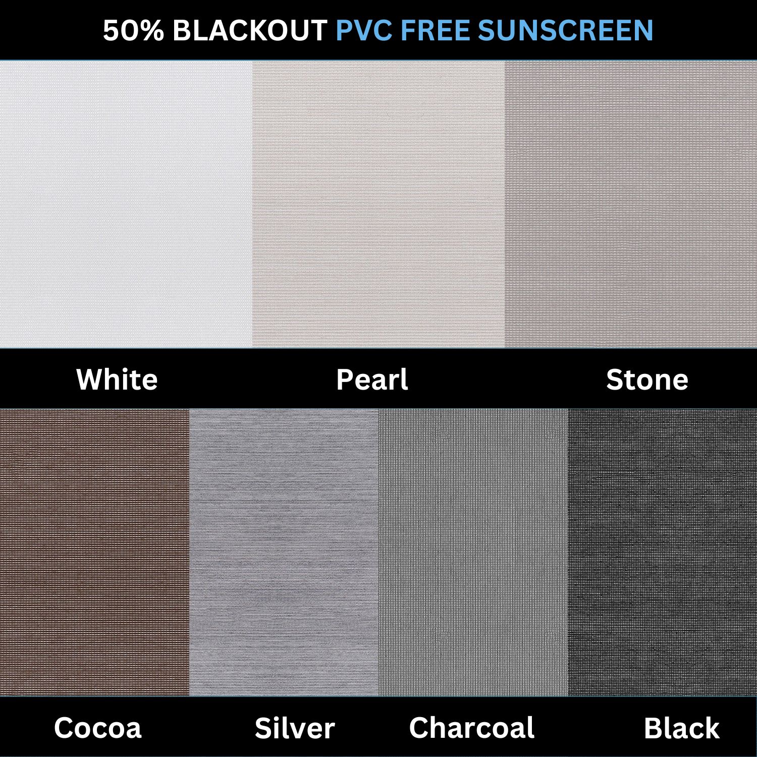 Roller 50% Blackout PVC Free Sunscreen: White, Pearl, Stone, Cocoa, Silver, Charcoal, Black