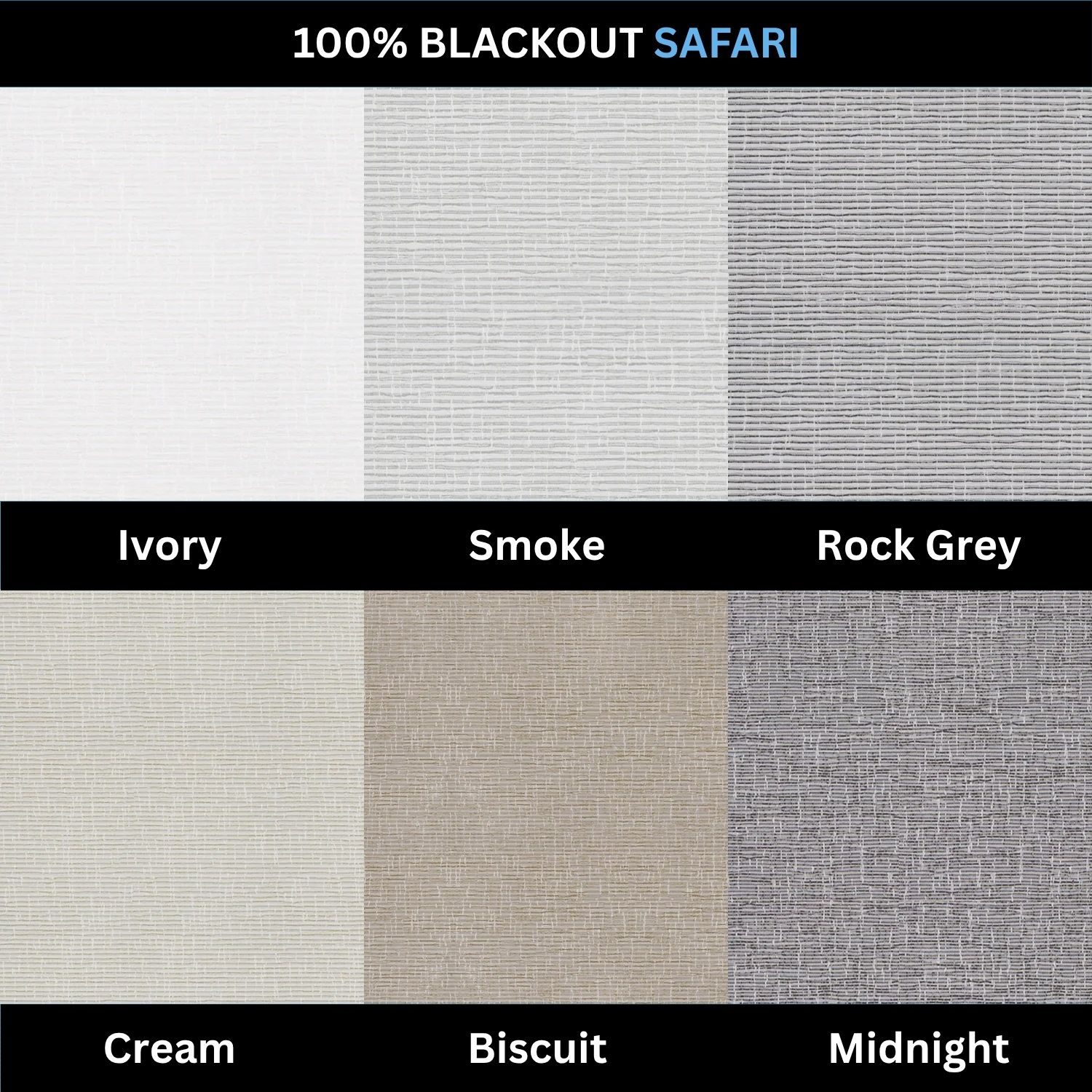 Roller 100% Blackout Safari: White, Cream, Smoke, Midnight, Rock Grey, Biscuit