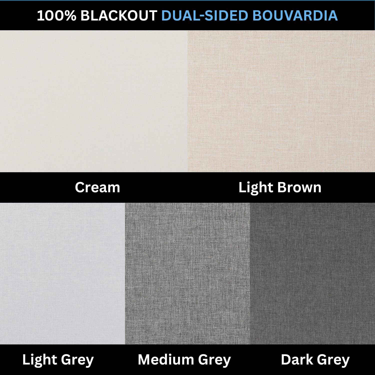 Roller 100% Blackout Dual-Sided Bouvardia: Cream, Light Brown, Light Grey, Medium Grey, Dark Grey