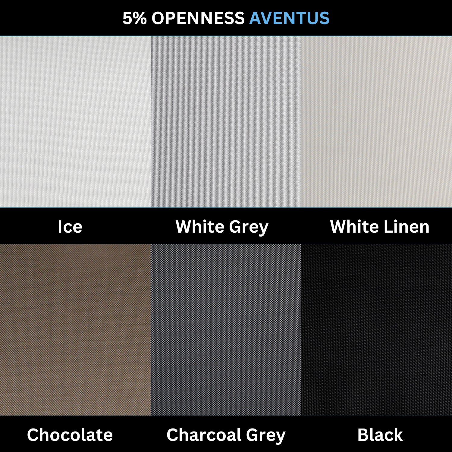 Roller 5% Openness Aventus: Ice, White Grey, White Linen, Chocolate, Charcoal Grey, Black