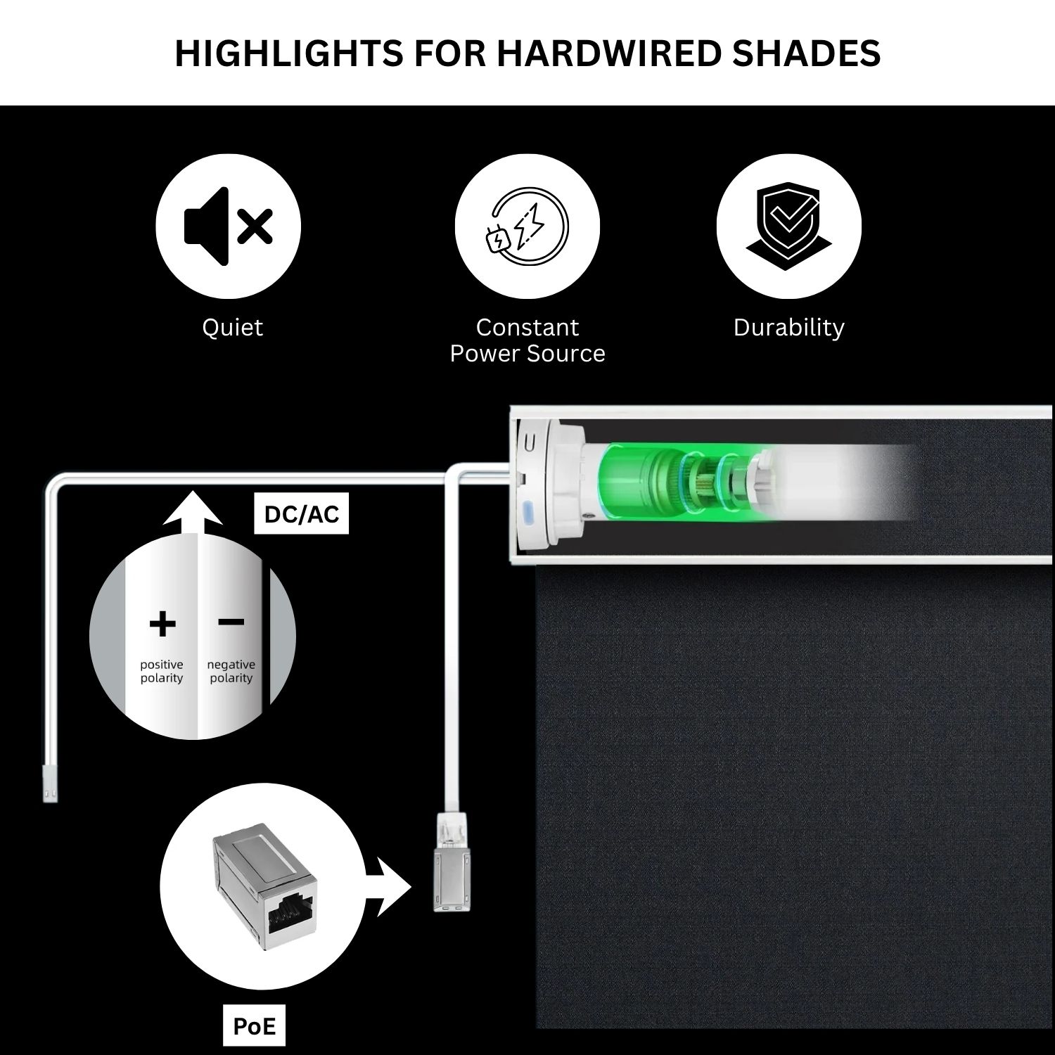 Hardwired Roller Shades: Traditional DC/AC & PoE Options