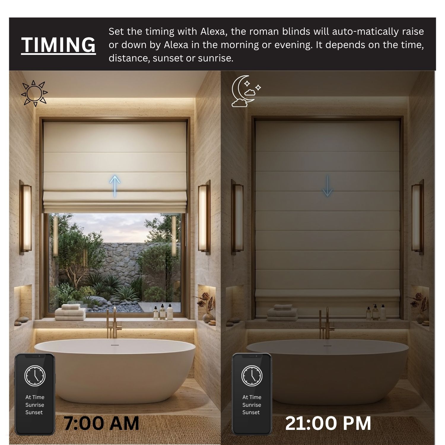Seamlessly sync your shades with other Matter-certified devices for an integrated home experience. With the Sunrise/Sunset mode, your blinds can rise with the morning light and close at dusk, aligning naturally with your daily rhythm.