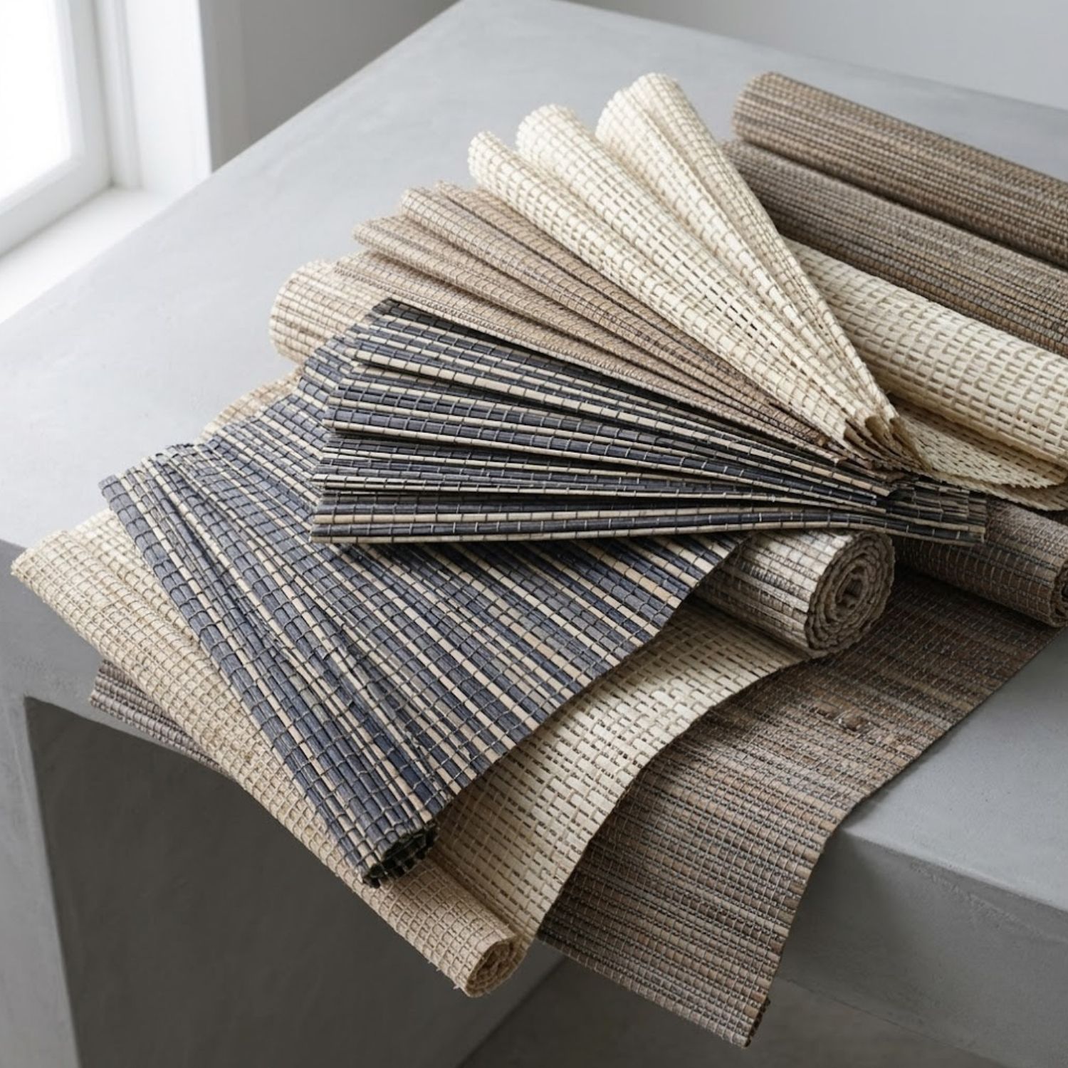 Straw and Bamboo Fabric – Natural, Handcrafted, and Long-Lasting This fabric is made from handcrafted straw and bamboo, giving it a warm, natural look. It has a light, earthy scent that makes you feel relaxed like you're far away from the busy world. The special weaving is done by skilled artisans, showing real care and tradition passed down through generations. The strong straw material also makes the curtains more durable, so they last a long time without fading or wearing out easily.