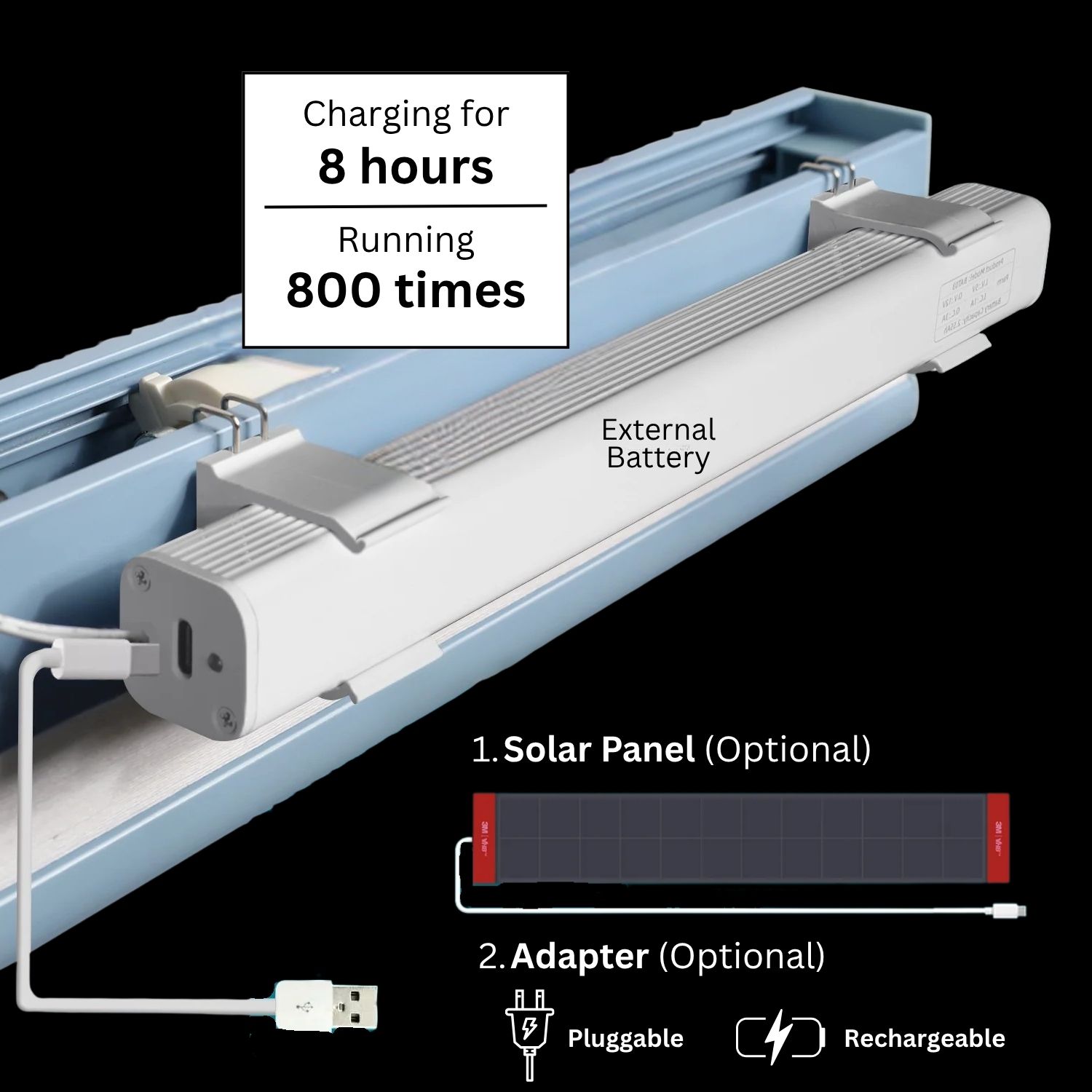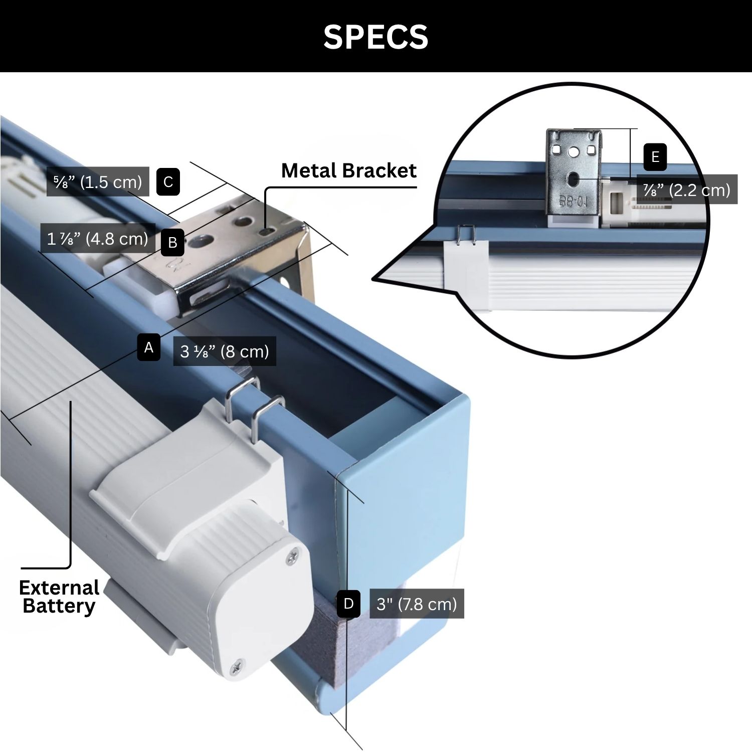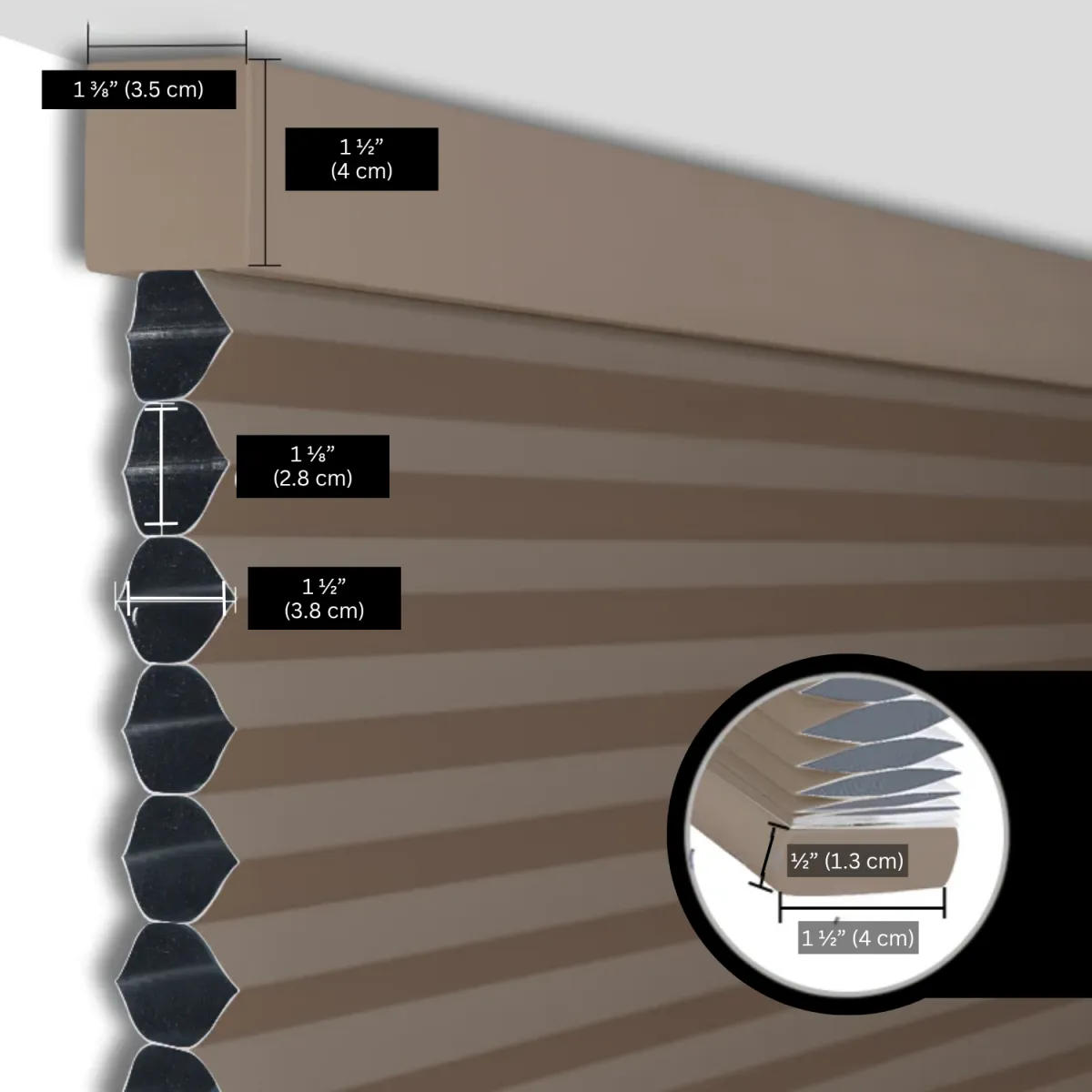 The Hazel shade has a 1.50-inch honeycomb design, perfect for narrow windows. It also has an external battery stick mounted on the valance, making it easy to charge and simple to use.