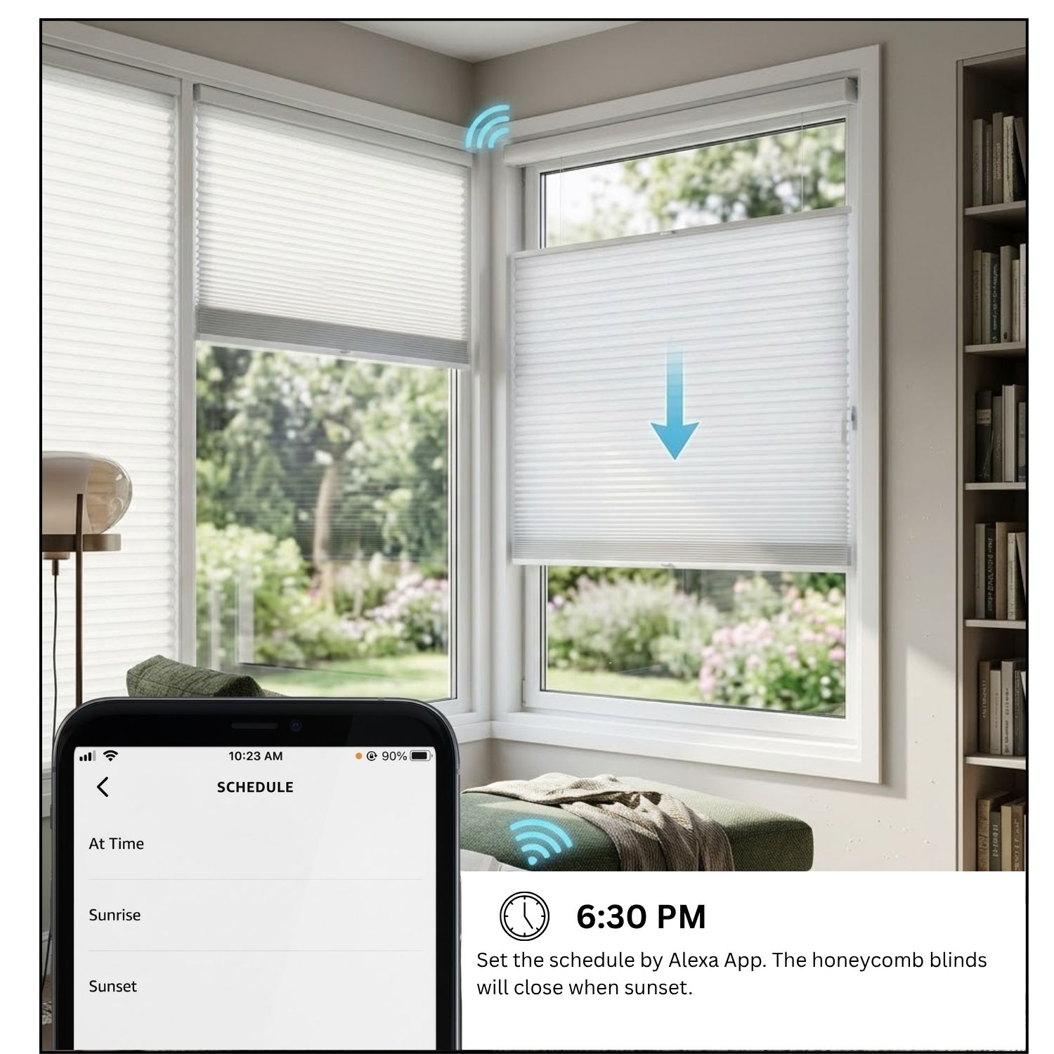 Seamlessly sync your shades with other Matter-certified devices for an integrated home experience. With the Sunrise/Sunset mode, your blinds can rise with the morning light and close at dusk, aligning naturally with your daily rhythm.