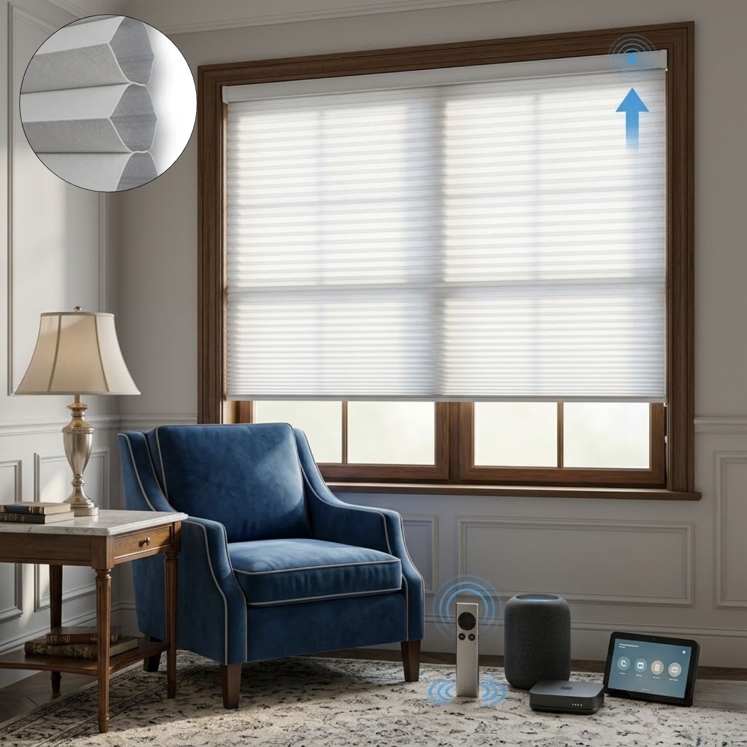 Coastal Smart Blinds’ motorized cellular shades are built to reduce heat loss and gain through your windows. With smart motors, you can set them to open or close on a schedule, helping lower your heating and cooling bills all year.