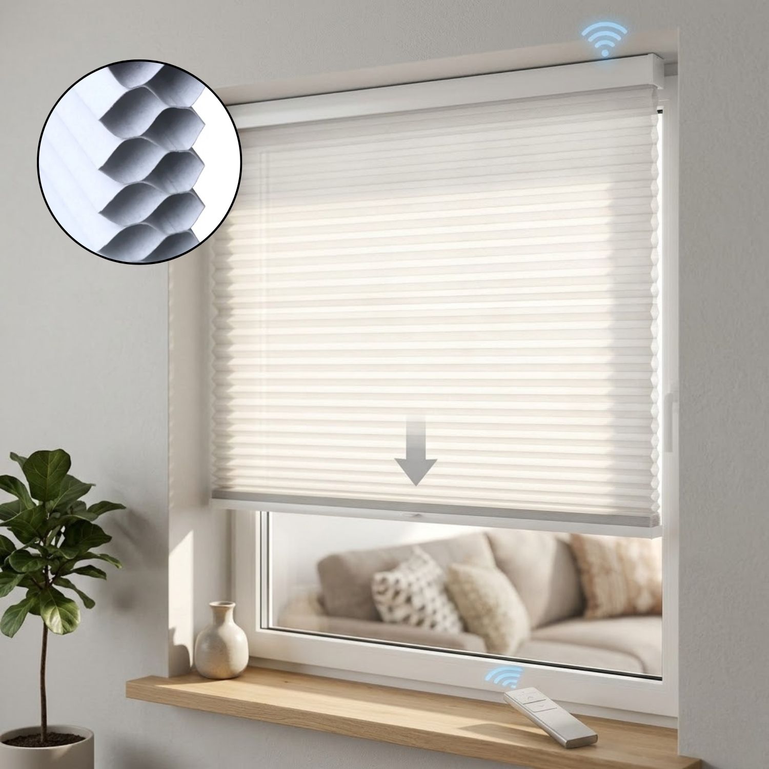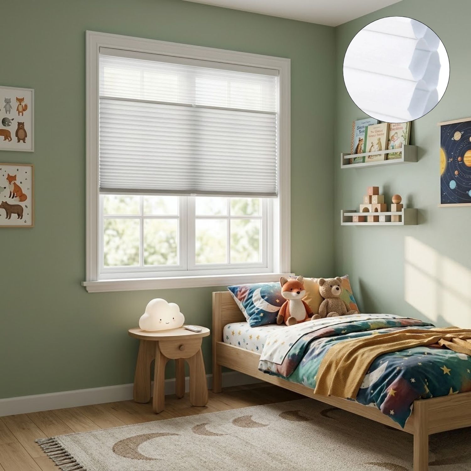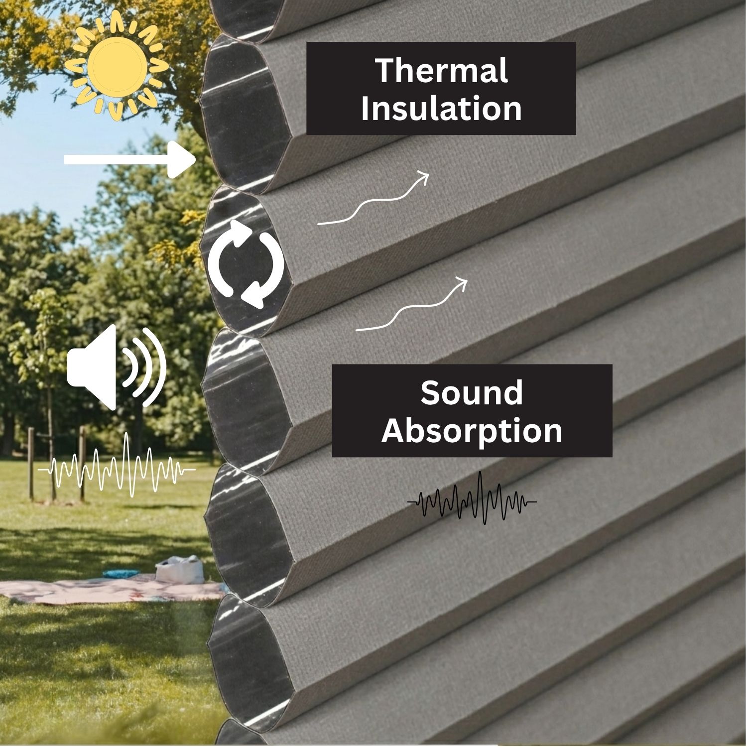 The Nowa design includes a 1.77-inch wide honeycomb structure, which helps keep your room warmer in the winter, cooler in the summer, and also blocks outside noise.