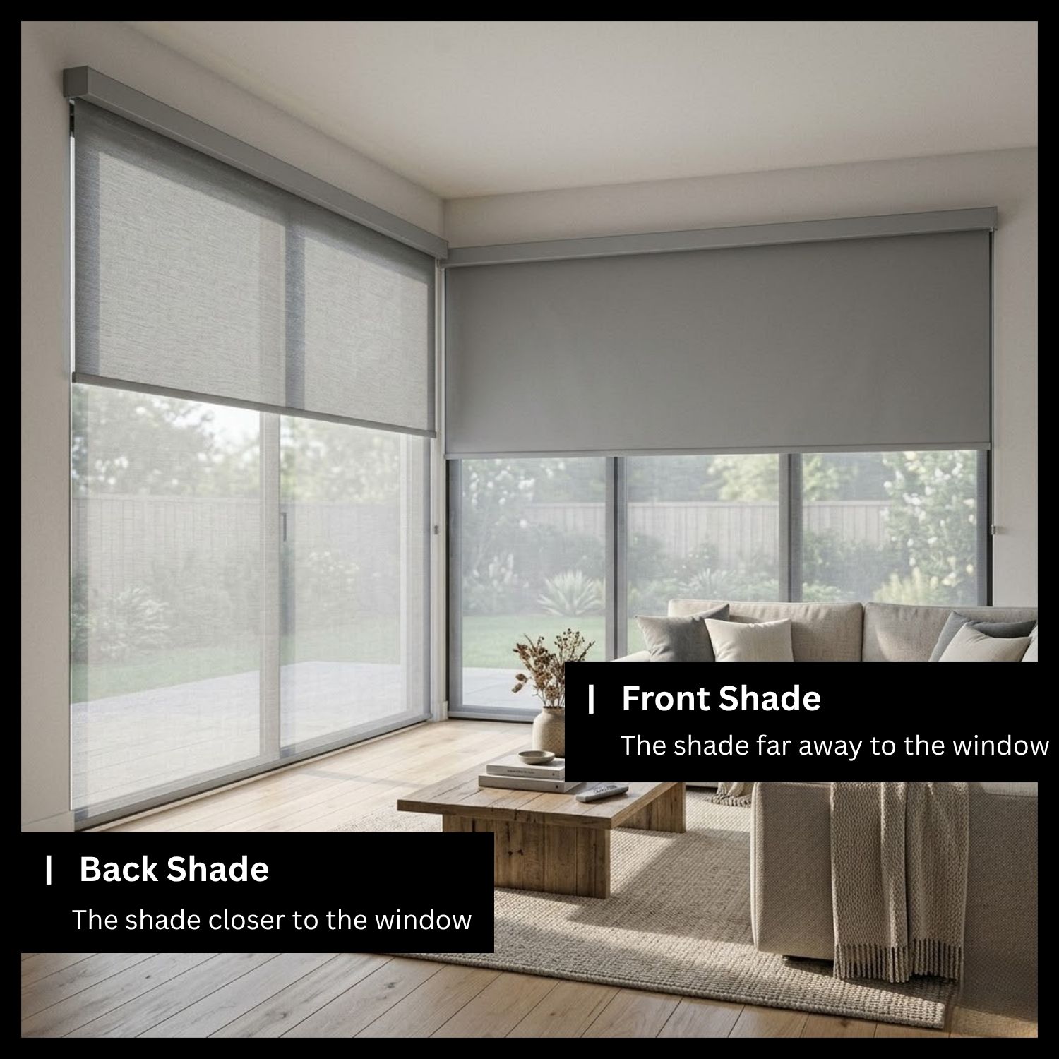 With Coastal Smart Blinds’ dual shades, you can choose from different fabric options to match your needs and style. The standard setup includes one blackout layer and one light filtering layer, but you can also mix and match fabrics the way you like. Just write your fabric choices in the CUSTOM FABRIC notes section when you order. This option lets you create a shade that fits your space perfectly whether you want more light control, better energy savings, or a design that matches your decor. It's made just for you.