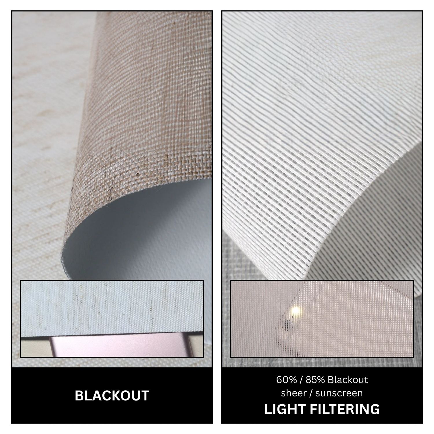 With Coastal Smart Blinds’ dual shades, you can choose from different fabric options to match your needs and style. The standard setup includes one blackout layer and one light filtering layer, but you can also mix and match fabrics the way you like. Just write your fabric choices in the CUSTOM FABRIC notes section when you order. This option lets you create a shade that fits your space perfectly whether you want more light control, better energy savings, or a design that matches your decor. It's made just for you.