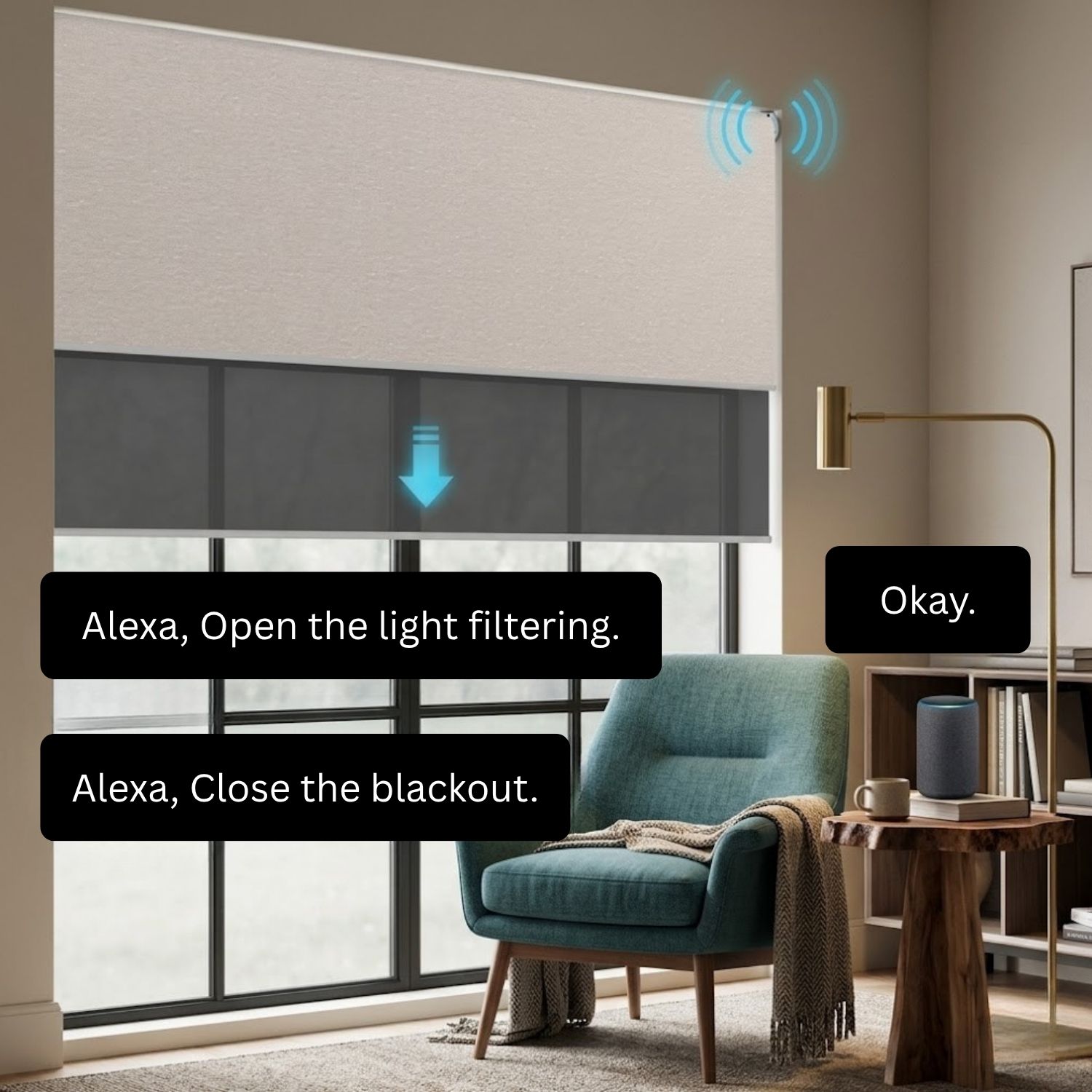 Discover the next level of smart living with Coastal Smart Blinds’ motorized shades, designed to do more than just open and close on a timer. With advanced automation features, you can create personalized scenes, like having your shades automatically lower when you say “Watching Movies” or adjust based on the time of day.