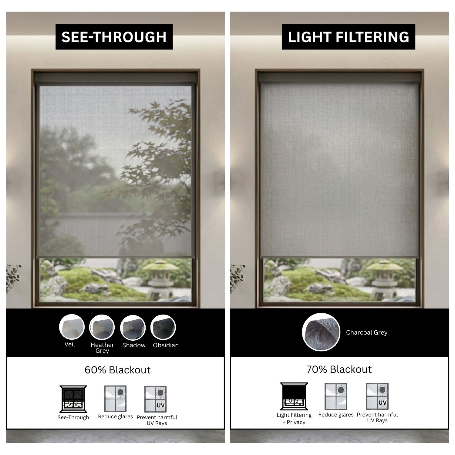 At Coastal Smart Blinds, our motorized roller shades combine clean, modern design with the convenience of smart technology. Whether you prefer light-filtering or blackout fabrics, our shades help block harmful UV rays, enhance privacy, and elevate the look of any room. We use only eco-friendly, non-toxic materials, ensuring each shade is as safe as it is stylish. Every fabric in our collection is carefully chosen, not just for how it looks, but for how it feels in your home. With Coastal Smart Blinds, you’re not just covering a window, you’re enhancing your lifestyle, one shade at a time.