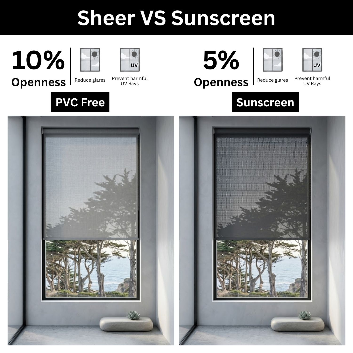PVC-free sunscreen fabric is designed to filter out harmful UV rays while gently diffusing natural light through its delicate, breathable weave. The result? A calm, sun-kissed atmosphere that fills your space with warmth, without harsh glare or exposure.