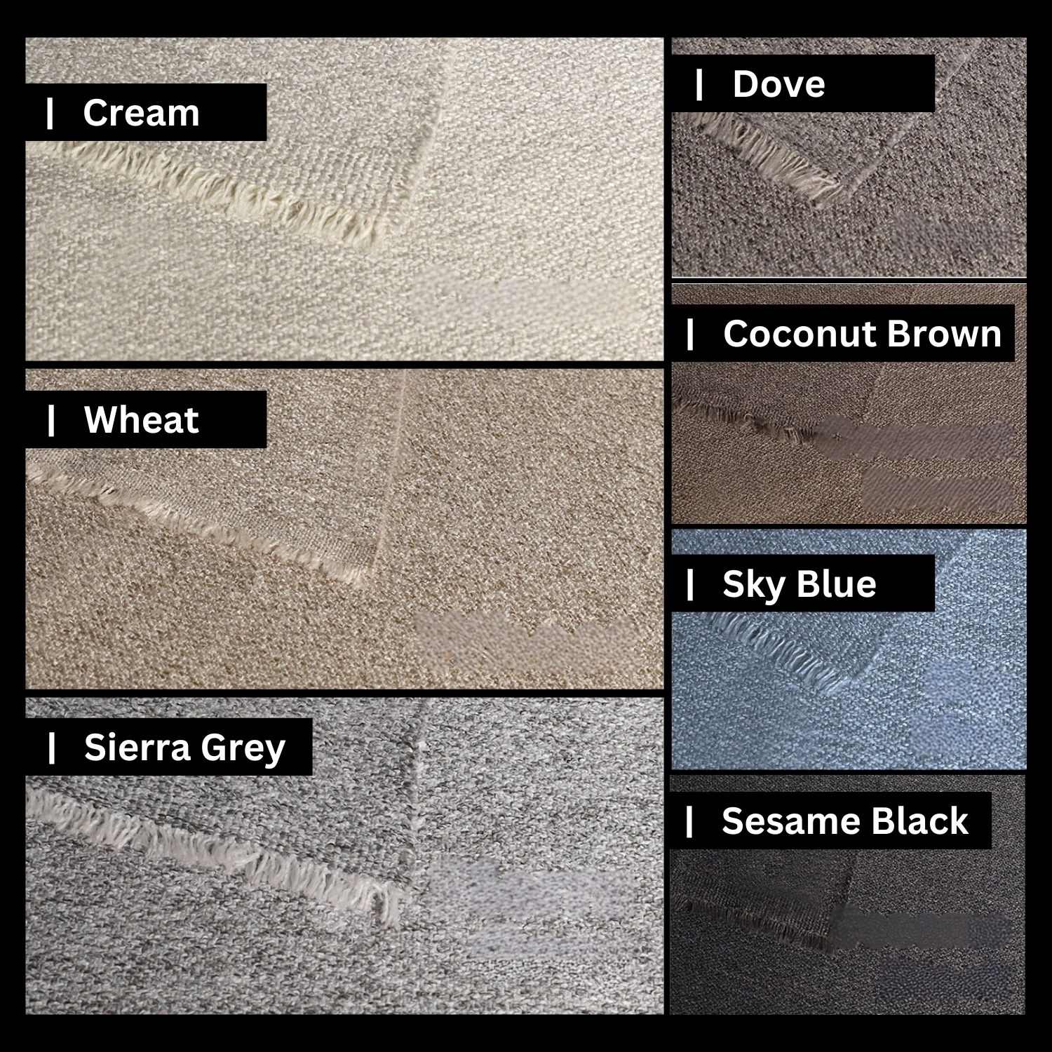 Drapery 90% Blackout: Cream, Wheat, Sierra Grey, Dove, Coconut Brown, Sky Blue, Sesame BlackDrapery Dreamscape Sheer: Phantom Ethereal, Colorful Radiance, Dazzling Profusion, Refined Elegance, Starry Brilliance