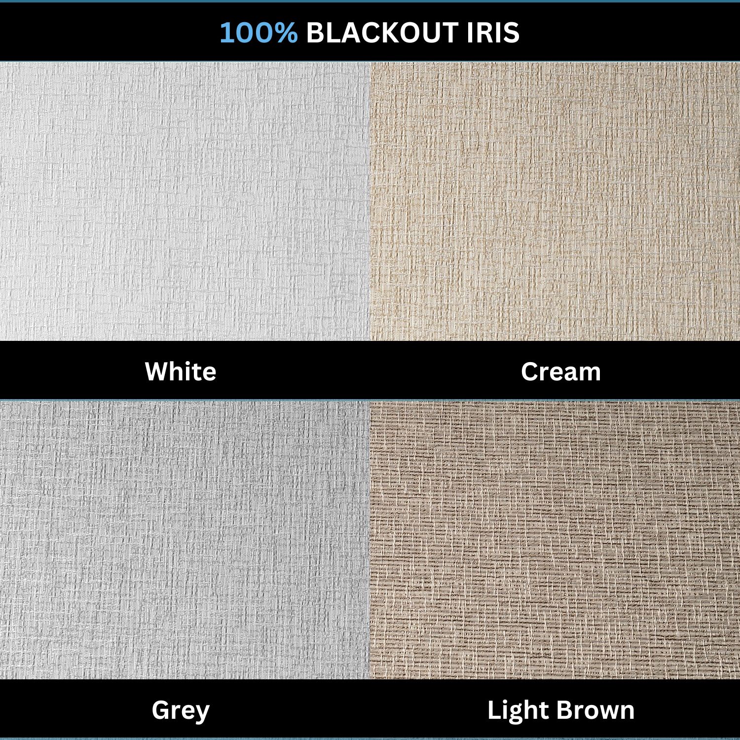 Roman 100% Blackout Iris: White, Cream, Grey, Light Brown