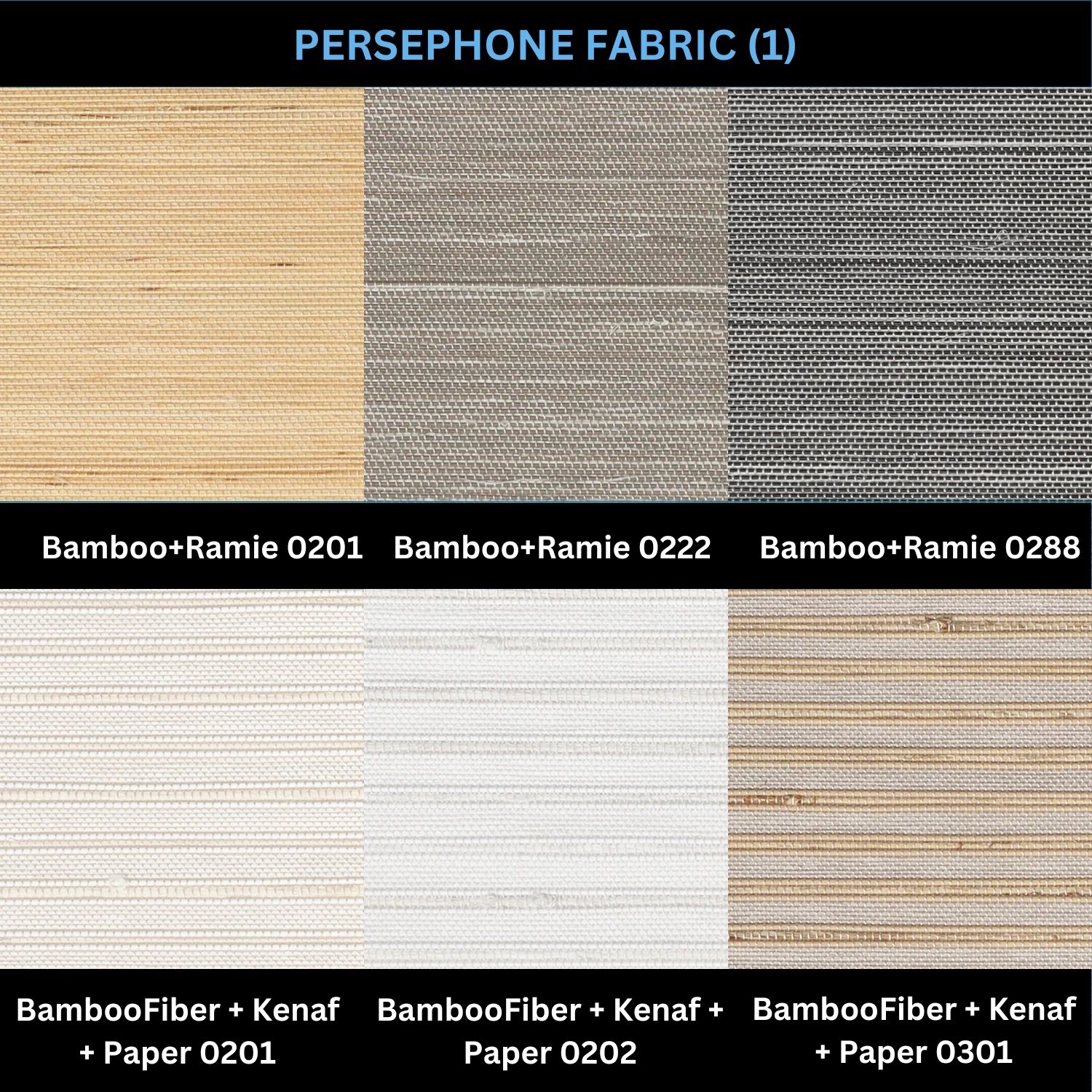 RAMIE 01A, RAMIE 01B, BAMBOO+PAPER 01A, BAMBOO+PAPER 01B, BAMBOO+PAPER 01C, LINEN+RAMIE 05E1, LINEN+RAMIE 05E2